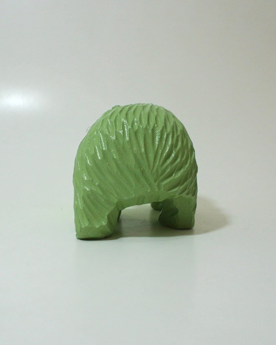 Vintage、作家物、アート的な観点など、どの角度からも需要の少ない量産型の木彫りの熊。おじいちゃんおばあちゃんの家に行くと必ず一つは飾ってあったりと、世代を越えて認知されているモチーフをPOPに加工、塗装を施したSPACYのリメイクプロダクトです。