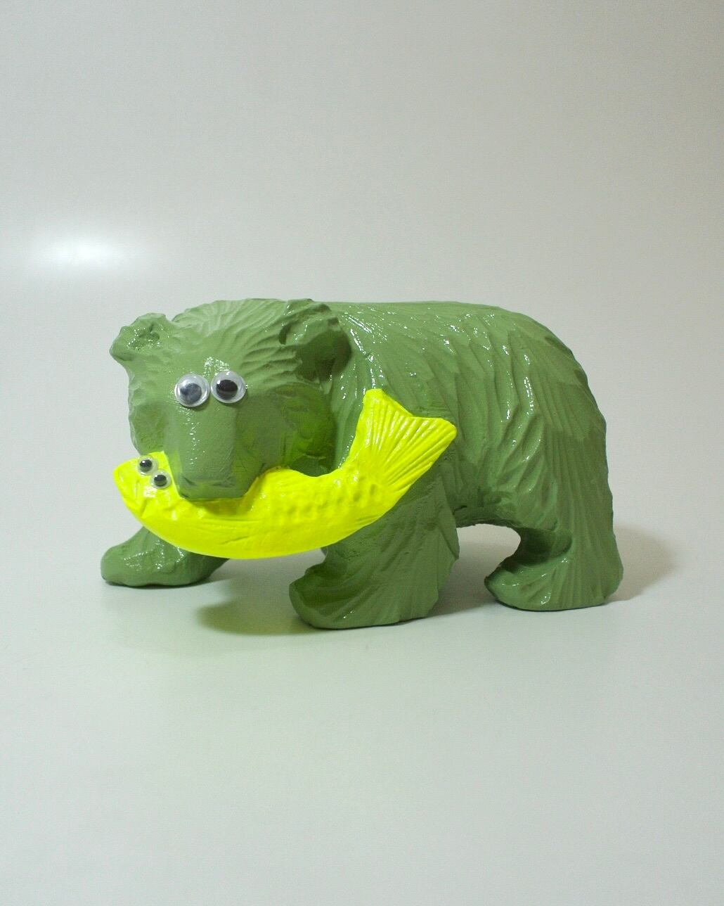 世間的にも好事家の間でも人気の無い、シャケを咥えたお土産熊さんを塗装したオブジェ。