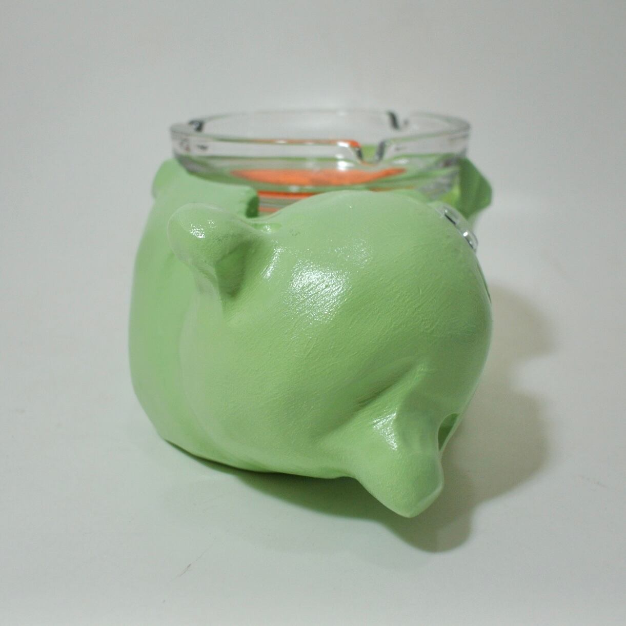 キャラー民芸 木彫り熊 灰皿 ライトグリーン w170