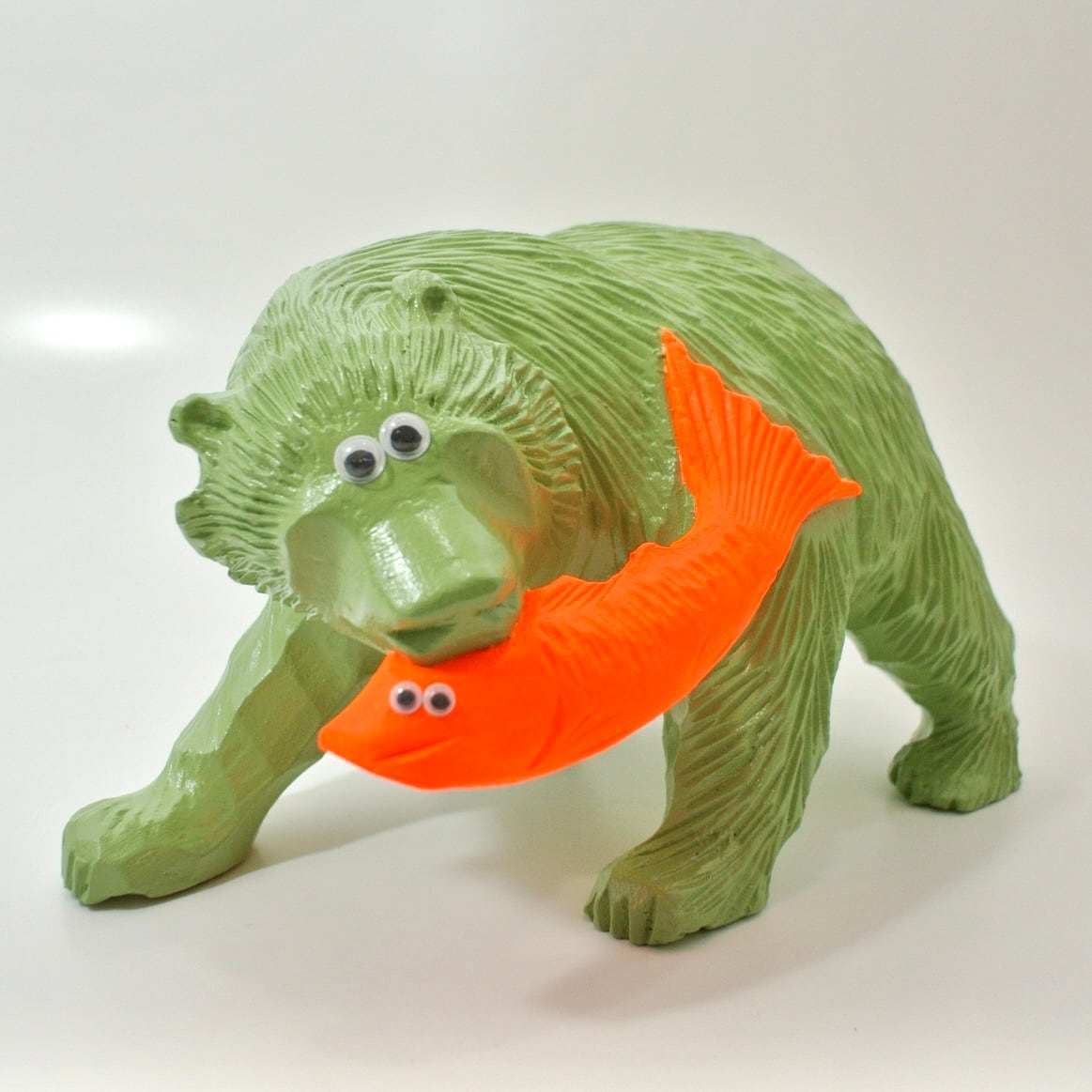 世間的にも好事家の間でも人気の無い、シャケを咥えたお土産熊さんを塗装したオブジェ。